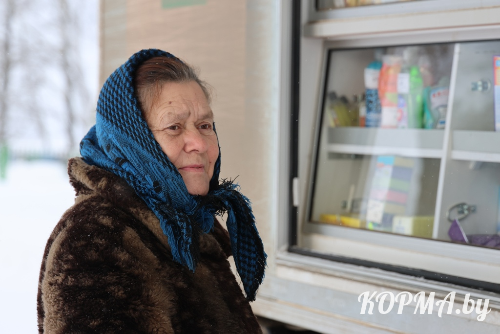 – Летом на велосипеде я сама езжу в магазин, а вот сейчас всё в основном покупаю в автолавке, – рассказывает местная жительница Людмила Яковлевна Короткевич. – Мне уже 72-й год пошёл. На улице видите, какой мороз стоит. Далеко не пойдёшь и не поедешь. Да и осталось нас в этом краю совсем мало. В основном молодёжь дома здесь под дачи покупает. В автолавку с удовольствием приходим. Покупаем всё, что нужно. Вот и сегодня я хлебушек взяла, сметанку и рыбу.