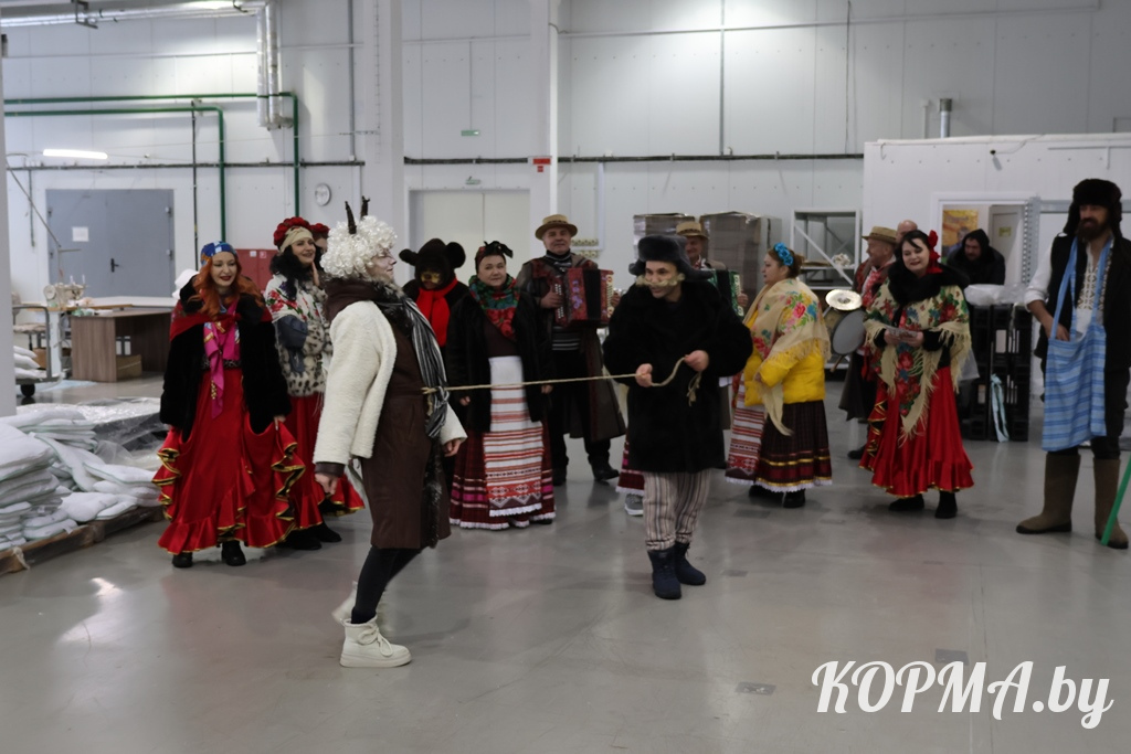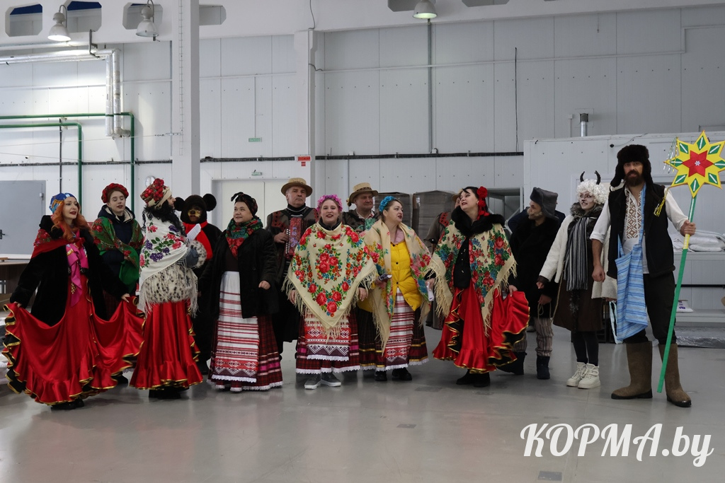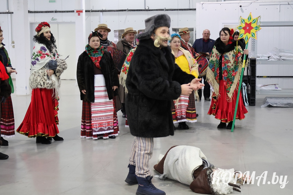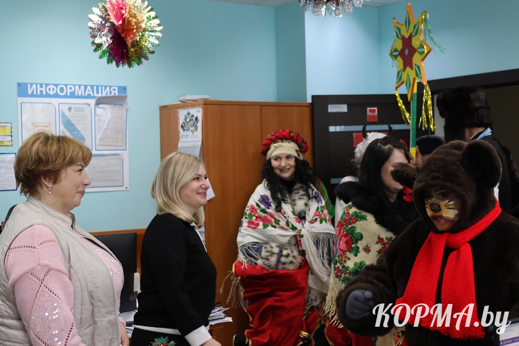 Подарить праздничное настроение и показать креативную инсценировку с элементами самобытной культуры белорусского народа в трудовые коллективы пришли не только артисты, но и главные герои Коляд.