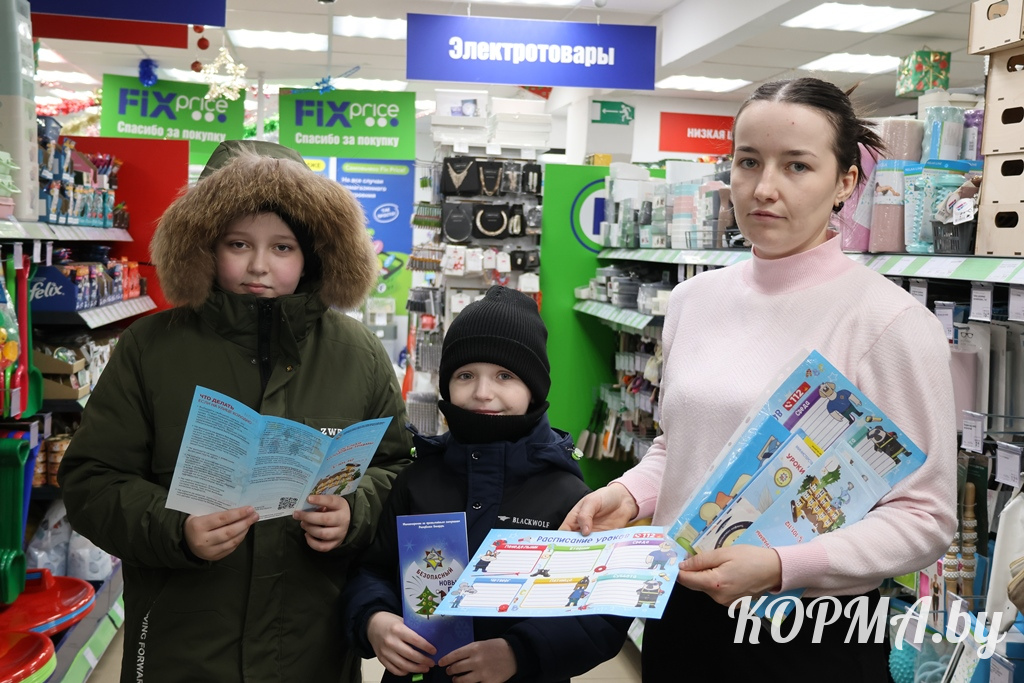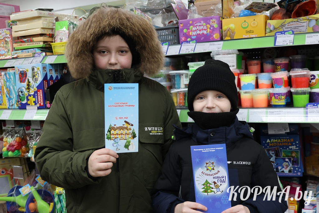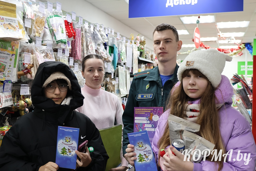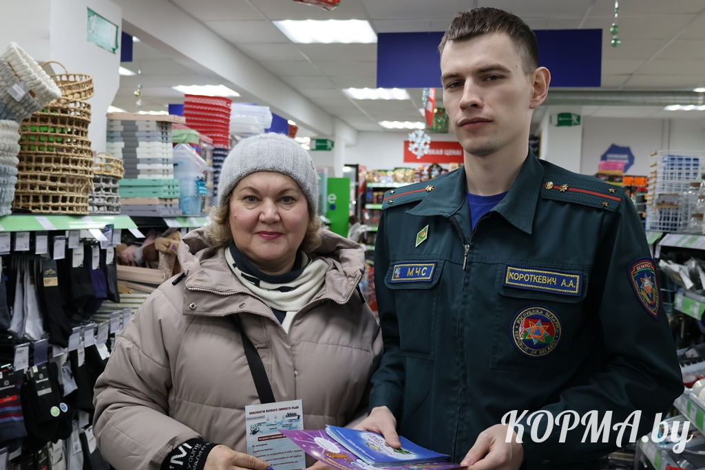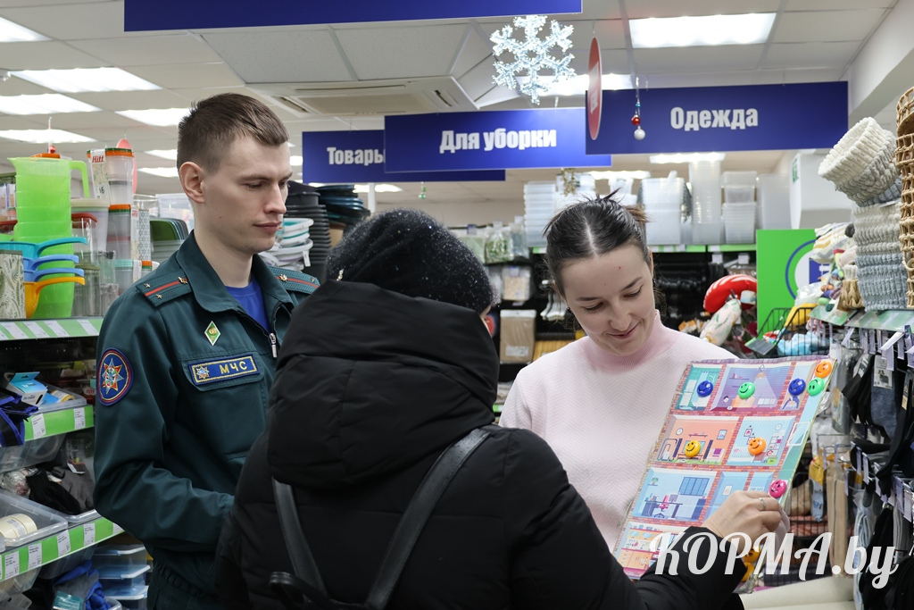 Представители Кормянского РОЧС провели с покупателями интерактивную игру, профилактическую беседу, задали несколько вопросов о пожарной безопасности. На память вручили фирменные листовки «Безопасный Новый год».