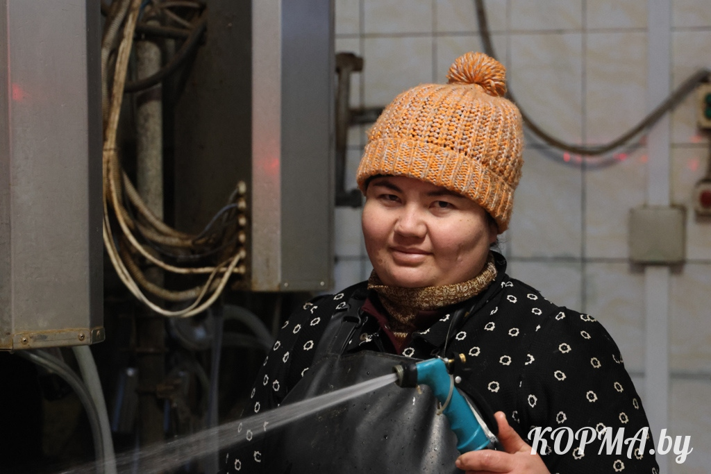 Самба Мукадас приехала в Беларусь из далёкого Туркменистана. В качества оператора машинного доения на молочно-товарном комплексе «Лебедёвка» ОАО «Кормаагросервис» трудится с октября 2025 года. За время работы адаптировалась к условиям труда, научилась всему, чего раньше не знала и не умела. Обеспечена жильём – благоустроенной квартирой в блокированном жилом доме в агрогородке Барсуки. Довольна и условиями труда, и уровнем заработной платы.