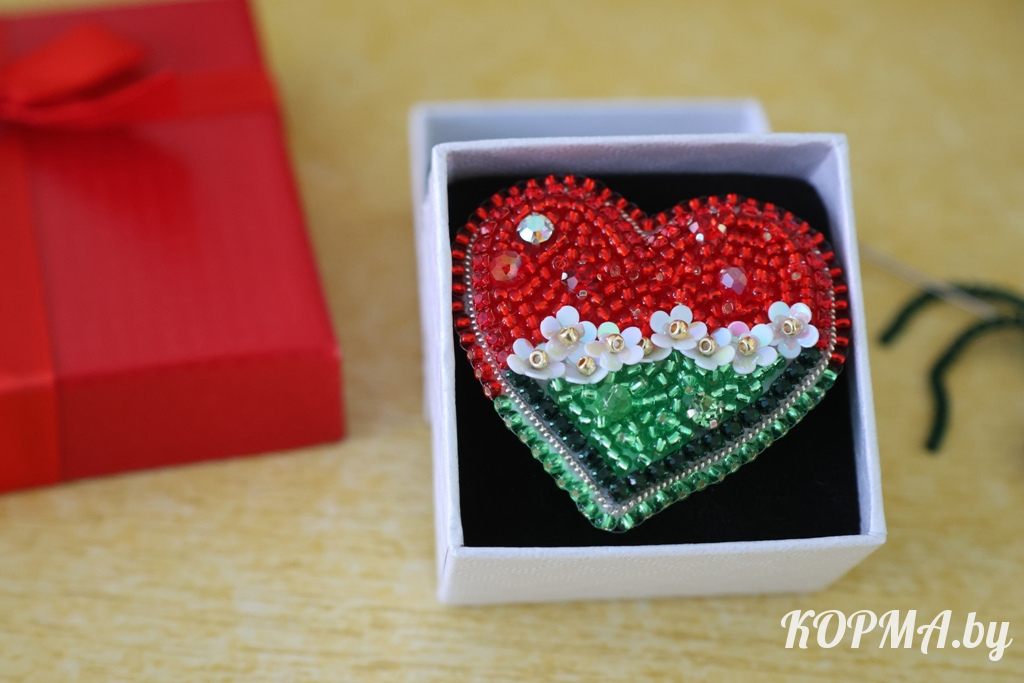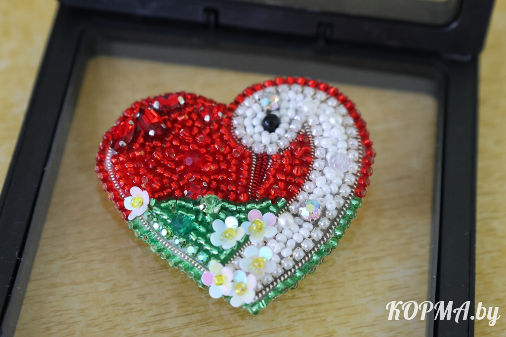 – Хобби это появилось совершенно случайно, – признаётся мастерица. – Как-то на просторах интернета увидела красивые броши из бисера и стекла, и так они понравились, что я решила попробовать: заказала свой первый набор, в котором было всё необходимое, и принялась за дело. Конечно, теперь, когда рука уже набита, я вижу все недочёты и ошибки, но всё равно тогда результат меня порадовал. Это занятие меня так увлекло, что я начала делать броши одну за другой. В моей коллекции уже более тридцати изделий, в основном это васильки, сердечки с мотивами белорусской символики, колоски, в общем, всё в духе патриотизма.
