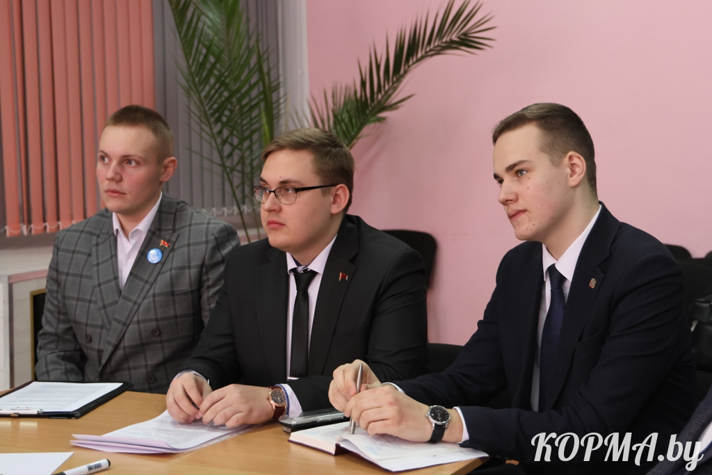 Участие в заседании принимали председатель Кормянского районного Совета депутатов Татьяна Шехтер, а также заместитель председателя Кормянского райисполкома Александр Соловьёв. Спикерами выступили активные студенты Гомельского государственного университета имени Франциска Скорины Даниил Лапчук, Станислав Шешарук и Артём Данильченко.